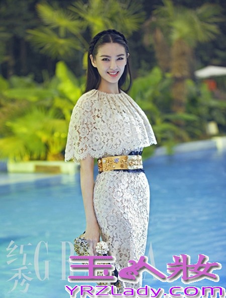 小编点评:一件蕾丝钩花设计的连身裙,披肩的设计展现复古典雅,搭配亮眼的金色腰带和精美奢华的手拿包包,名媛风十足。