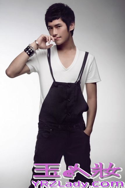 时尚点评:V字领短袖配上有点滑稽背带连体装,男生也有小清新哦。