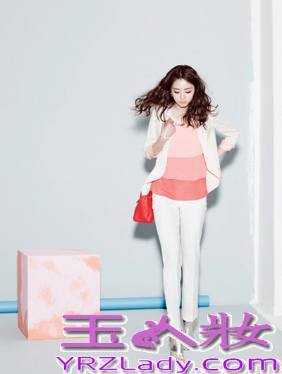 小编点评:清新范的李沇熹(李妍熙)将条纹拼接渐变色雪纺衫搭配白色的西装裤和西装外套,尽显优雅干练。