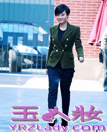 小编点评:孙俪军绿色小西装十分帅气,搭配哈伦裤和流苏高跟鞋,短发的孙俪看起来十分精神。