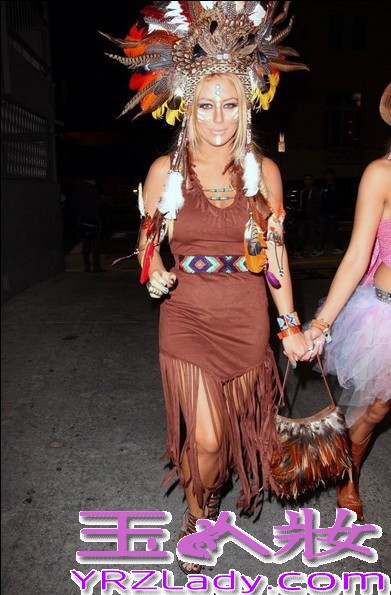 小编点评:Aubrey o'day打扮成印第安土著女,性感火辣的造型一定能为part增加气氛。