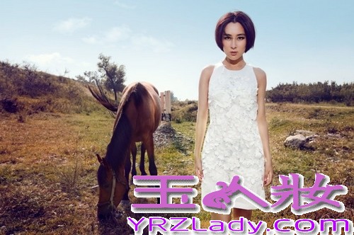 小编点评:辽阔的草原为背景的拍摄感觉啊,白色立体花朵连衣裙完美展现了马苏的清新淡雅的女神魅力,简约的立体花朵让人心动。