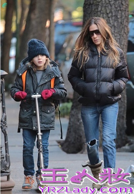 小编点评:中分长随意的披散,茶色墨镜,身着黑色短款羽绒服,温暖而不显臃肿,下身破洞牛仔裤和棕色短靴,时尚而显瘦哦。