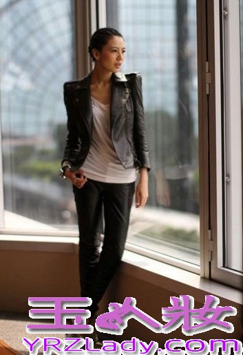 小编点评:黑色皮衣外套搭配白色T恤,黑色皮裤,高跟鞋,经典简约的黑白搭配,气场十足。