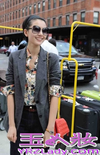 小编点评:BF风长款小西装+印花衬衫+黑色紧身裤,复古的搭配简单大方,一款红色小挎包点亮整身。