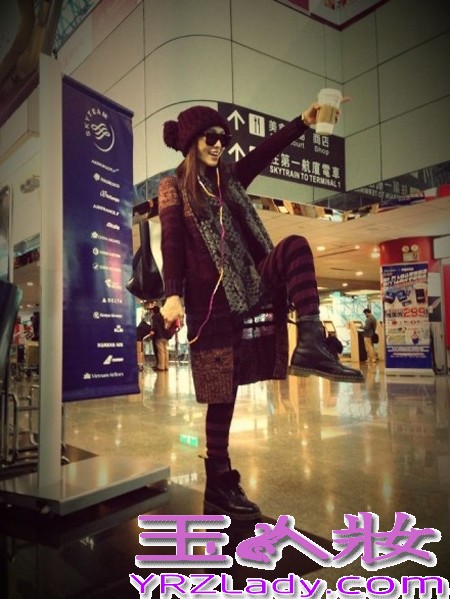 小编点评:台湾明星范范范玮琪高挑的身材无论穿什么都都起独特的风格,毛衣外套下搭紫黑色的条纹打底裤,马丁靴的搭配,帅气的欧美混搭风。