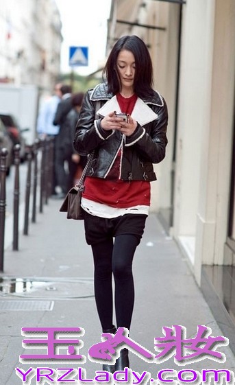 小编点评:周迅,翻毛领小皮衣,内搭红色休闲T恤,下身打底裤,脚穿踝靴,时尚大气,很有混搭范儿。