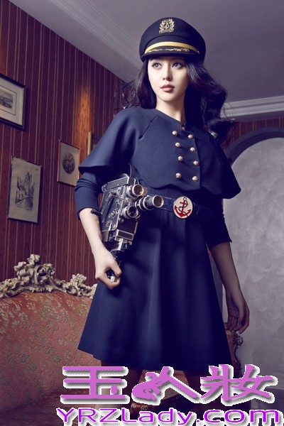 小编点评:深蓝色的斗篷制服装,荷叶边的斗篷设计合适特别,连衣裙的设计让衣服更突显特别之处,帽子的融入显的范冰冰的脸更小更精致呢。