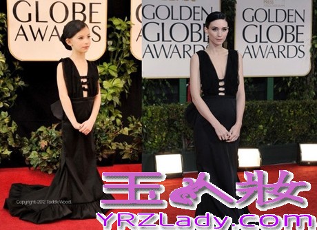 小编点评:鲁妮·玛拉在红毯上表现有点矜持,不大放得开,小“鲁妮”有样学样倒是显得十分淑女。这件垂坠的黑裙并没有将两人拉开太大的距离,原因大概就是本尊与模仿者的身材曲线几乎一致。小童模更加有气势一些。