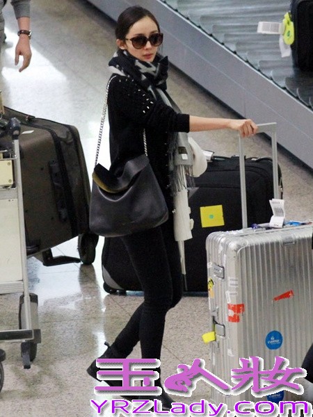 小编点评:杨幂经典的黑白搭配,一身黑色装扮需要有点睛之笔来点亮整身搭配,搭配一条黑白相间的羊毛围巾,帅气宽松款的铆钉针织外套,随意的搭配时尚大气。