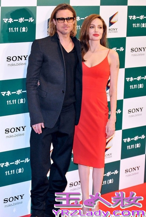 朱莉与丈夫布拉德皮特共同出席的发布会,男才女貌格外合谐。朱莉棕色长发做成自然的波浪卷,成熟妩媚,红色唇妆、红色小礼服,勾勒出饱满圆润的胸型,完美的驾驶出红色的妖娆与妩媚。
