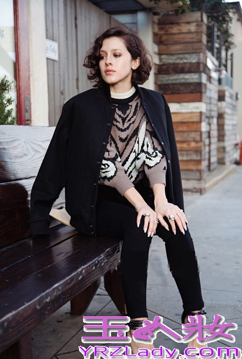 何穗最新街拍,灰色毛衣+墨绿色光泽感半裙,文艺慵懒,少女感十足。马海毛毛衣来自H&M,手提包和粉色毛拖鞋均来自Gucci,半裙来自Tibi 2016