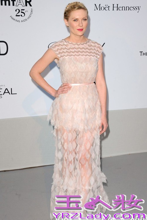 透视装不一定非要强调性感,同样适合于各种需要装嫩的场合。克尔斯滕?邓斯特(Kirsten Dunst)这款雅致菱形透视长裙显得精致甜美,将透视元素的运用推上更浪漫的层次。同样适合新娘造型。