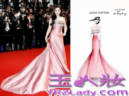LV定制粉色长裙-范冰冰2013戛纳开幕红毯