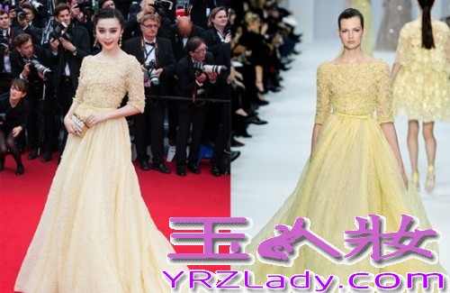 ElieSaab2012春季高定淡黄长裙-范冰冰《花容月貌》首映式