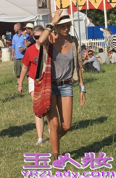 混搭高手西耶娜米勒(Sienna Miller)为我们做出另一个完美示范,演示弥漫在纳什维尔的摩登嬉皮风。应对南方热浪,这套装束十分完美,热裤搭配低调首饰。