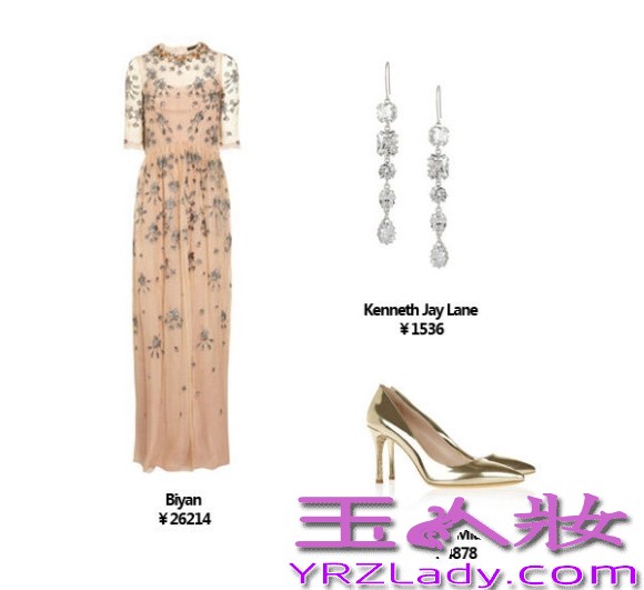裸色修身裙装显得很高贵典雅,凸显优美的身材曲线。这套装扮较前几套都得体的多,裸色也很衬肌肤的颜色显得更加白皙。