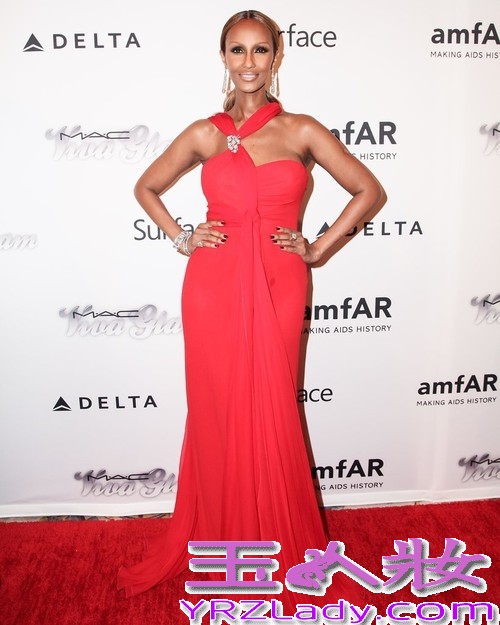 伊曼(Iman)身穿糖果粉色胸前交叉长礼服,艳光照人。