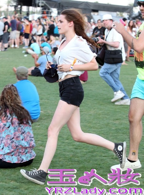 克里斯丁斯图尔特有着天生细瘦身材,不过这个喜欢摇滚风的女生可是很少穿短裤这种清凉的单品呢,只有参加音乐节时才能看到克里斯丁如此休闲的打扮,高腰款式的黑色短裤更能凸显修长的美腿,系腰穿的破洞T恤更能散发出小美女的性感气质喽。