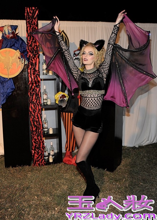 1、莉迪亚·赫斯特(Lydia Hearst)紫黑色蝙蝠服装让人不寒而栗!