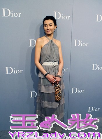 张曼玉在时尚圈的受认可程度享誉国际。她超越岁月的美丽,曾经的影后到经常出现各大品牌发布会的上座嘉宾,张曼玉在国际时尚界展现了中国女性独特品位。她的美丽和穿衣哲学更是让无数人所崇拜。这款系脖灰色的松糕长裙礼服,腰间白色腰带的设计凸显出纤细的身材,张曼玉把低调的灰色穿出如此的高贵大气之感,精致的妆容,搭配包包与金属类的首饰,优雅女王气质尽显无遗!
