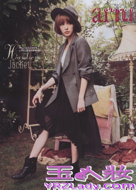 日本杂志人气女模,身上的每一笔都是经过仔细雕刻、捉摸的,帽子与西装的一色系,仿若是一个系列的服饰,长发短扎,配合西装、帽子的率性和干练以及时尚品味,混搭白色雪纺、黑色百褶裙、黑色短靴,暗色系的休闲搭,处处都是时尚元素哦!