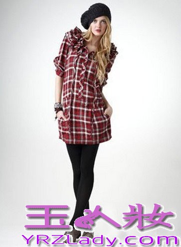 苏格兰格子的连衣裙简单大方却又不失女人味,上面大胆的图案源自男装的千鸟格,怀旧的贝雷帽加上低调却又不是奢华的人造毛细节,经典中的经典且不死板。
