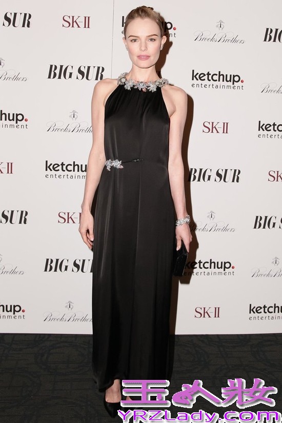凯特·波茨沃斯(Kate Bosworth)一袭Christopher Kane黑色褶皱礼服低调性感亮相《大瑟尔(Big Sur)》纽约首映。