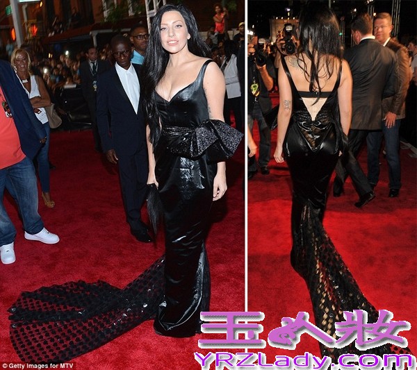 Lady Gaga一袭露爆乳黑色皮裙亮相2013MTV音乐录影带大奖,非常性感