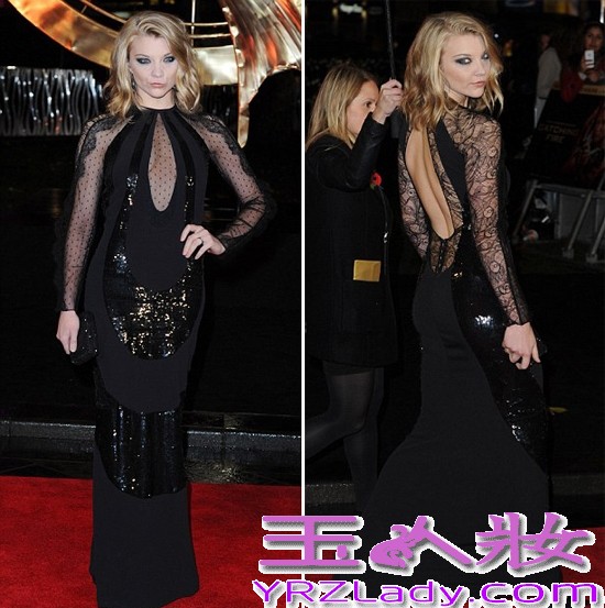 演员娜塔莉·多默尔(Natalie Dormer)身穿一袭黑色礼服亮相,胸前透视及露背设计性感十足!