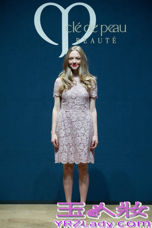 日本资生堂化妆品活动现场,阿曼达·塞弗里德(Amanda Seyfried)一袭甜美粉红色小礼服走出来,搭配经典大胆的红色双唇,可爱之余更添性感!