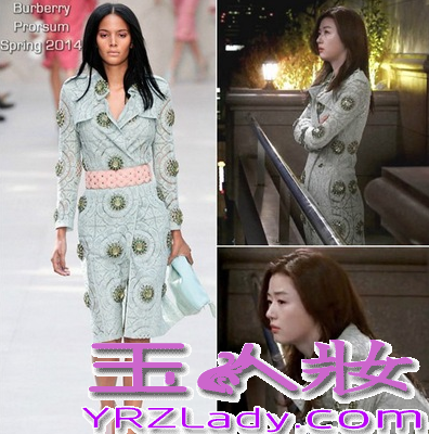 全智贤在剧中的穿着搭配大部分都是来自国际大牌,第一套服装是来自Marc Jacobs 2014春季款,第二件Burberry 2014春季款的风衣,都非常的高端大气哦!