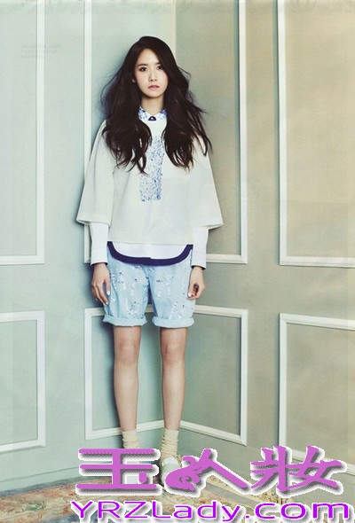 林允儿的身材比较显瘦,所以穿衣的时候尽可能的强调出分量感,否则瘦的不健康。这里选择人人都有的衬衣搭配宽松卫衣,露出来的领口和衣角显得格外清爽。下面利用短裤把俏皮感营造出来,如果觉得短裤很凉,换上铅笔裤也是可以的。