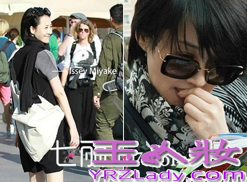 许晴的穿衣风格比较多变,这件三宅一生的上衣与黑色连体裤装搭配出了几分欧美的气质。加上Alexander McQueen的围巾,低调又奢华。