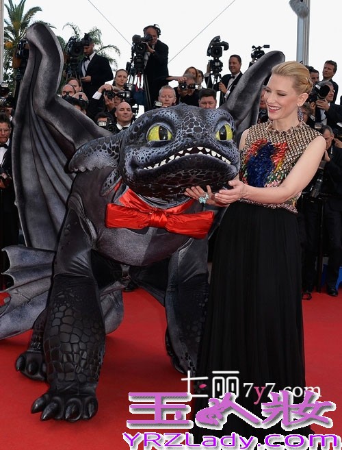 澳大利亚影视演员凯特·布兰切特(Cate Blanchett )参加《驯龙高手2》电影首映,一袭纪梵希上下不同材质礼服与“无牙”一同现身红毯,奢华吸睛!