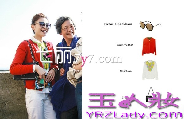 搭配要点:victoria beckham墨镜+Louis Vuitton外套+Moschino衬衫+CHANEL链条包,红色的外套显得刘涛起色非常好,白衬衫的花朵衬托了花儿与少年的主题,穿上白色的裤子更有轻熟女的Feel,黑色的链条包绝对是今年的百搭之王。