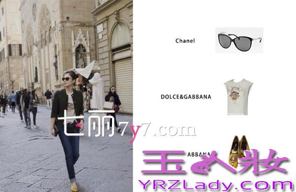 搭配要点:CHANEL墨镜+DOLCE&GABBANA印花T恤+DOLCE&GABBANA单鞋,轻熟女的一套搭配,简单的搭配却又不一样的效果,手上拿着黑色的手拿包,与外套和墨镜相呼应,看起来大牌感十足,MM们可以多多尝试!
