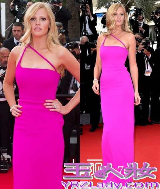 劳拉·斯通 (Lara Stone)这次让自己优雅的亮相在首映礼的红毯上,简单剪裁玫红色长裙包裹着其火辣的曲线,胸口处的设计凸显出精心搭配的衣品,而艳丽的色彩更是让她成功吸睛,成为众女星中最娇羞的一朵花。
