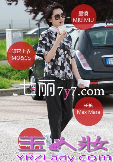 搭配要点:MIU MIU墨镜+MO&COT恤+MAX MARA长裤+NIKE运动鞋,休闲十足的一套搭配,舒适随意但是气场十足,简单的印花T恤搭配黑色哈伦裤简约有范,穿上白色的运动鞋更加清新。