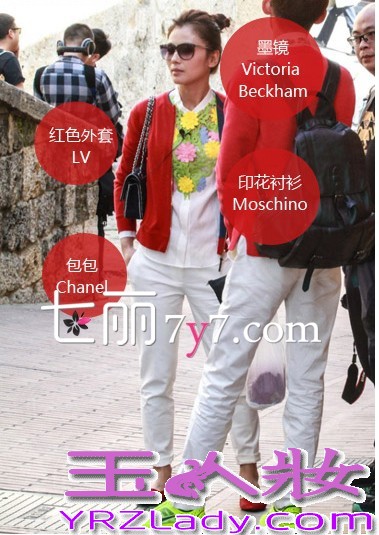搭配要点:VICTORIA BECKHAM墨镜+MOSCHINO印花衬衫+LV红色外套+CHANEL链条包,刘涛和张翰一同选择和红色和白色的搭配,非常的抢镜,上半身是全套的重点,下半身就要越简单越好。