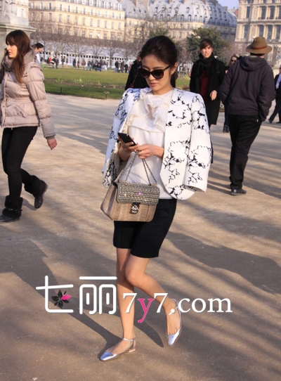 如果你觉得搭配是件很麻烦的事,不如将套装直接搬来照穿。安以轩用白色雪纺衫搭配黑色包臀裙,简单的在肩上搭个西装外套,气场十足还特别有范。尖头鞋和小香包都动起来,绝对够大牌。