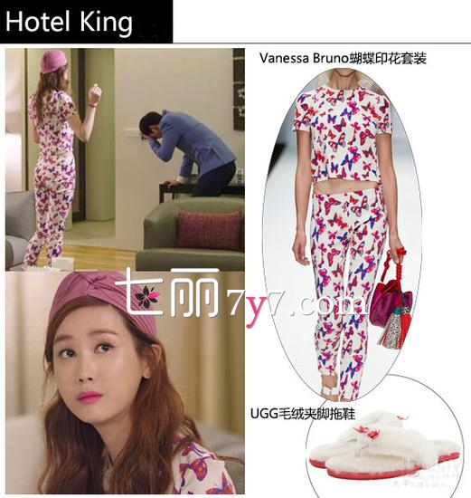 时尚服装:Vanessa Bruno蝴蝶印花套装+UGG拖鞋