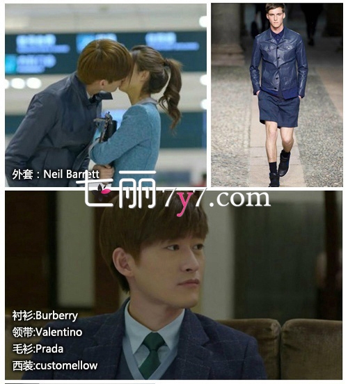 点评:小翻领的皮革外套是设计组最惯用的“手段”,从图片中我们看到,neil barrett外套、巴宝莉衬衫、华伦天奴领带、普拉达毛衫、customellow西装等,各类大牌无不为张翰做衬托,让他时刻保持着时尚个性范。