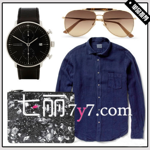 推荐搭配:深蓝衬衫+腕表+手拿包+墨镜