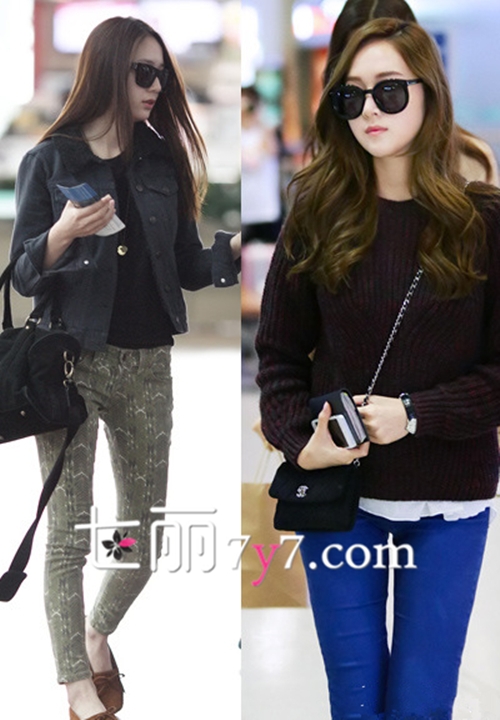 少女时代F(x)组合机场时尚大募集 Jessica郑秀妍Krystal郑秀晶搭配秀