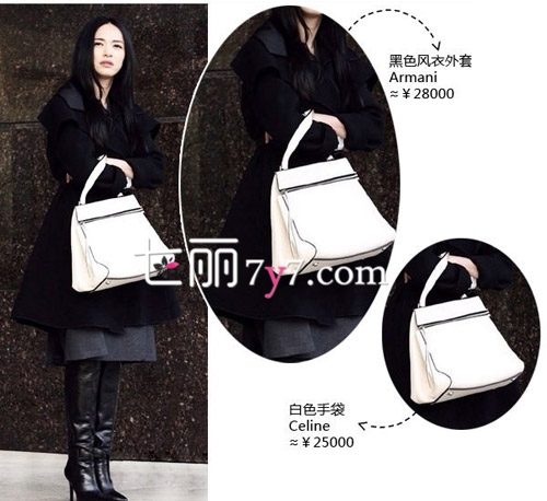 Celine是知性OL的代表作,让姚晨在《离婚律师》里更加百变,黑色的Armani风衣展现出十足的女人味,搭配白色的包包气场十足。