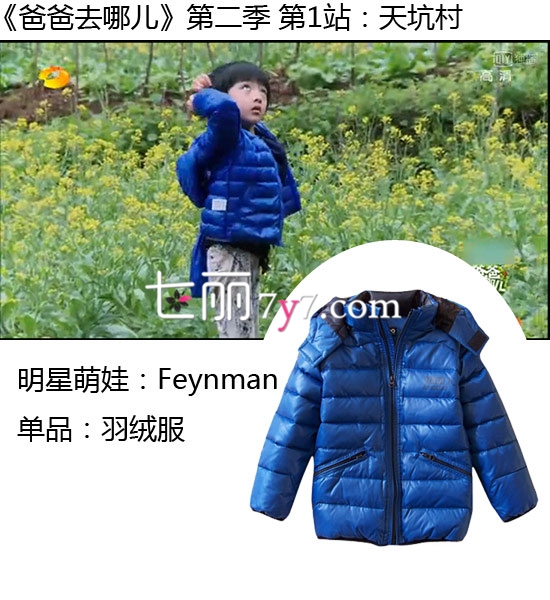 搭配要点:费曼是十足的潮男,有自己的穿搭理念,蓝色的羽绒服可以令费曼看起来很帅气,搭配印花的长裤别有一番风味,这样的穿搭不是人人都可以驾驭的哦!潮男费曼也有自己的Style。