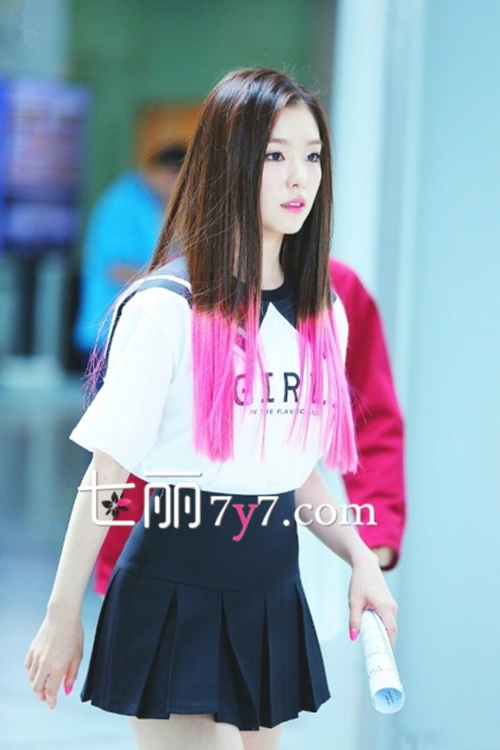 搭配要点:粉色的渐变染发是Irene的代表,身为Red Velvet组合队长,很有领导气息。学院风的一套服装,让Irene萌萌哒,蝙蝠袖的上衣看起来简单十足,穿上藏蓝色的百褶裙甜美的气息油然而生。