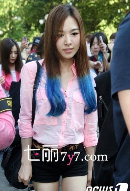 作为队内主唱的wendy,头发上用了一款比较气质的宝蓝色,在穿衣着装上也非常有时尚潮人的气场哟!一件粉色衬衫,微透的感觉能展示出性感,搭配上黑色短裤,一条豹纹皮带,让甜美与性感能完美结合一起,展现百变魅力。