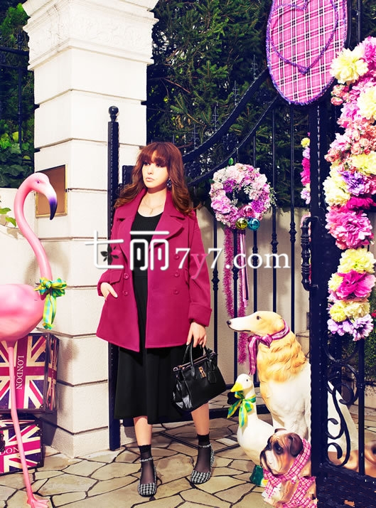 搭配要点:偏紫的玫红色秋冬非常流行,展现出十足的女人味,内搭黑色的打底衫和黑色的高腰裙,长款的设计可以遮盖住肚子和腿部的肉肉,露出脚踝的位置,这样才能更加显瘦又显高。